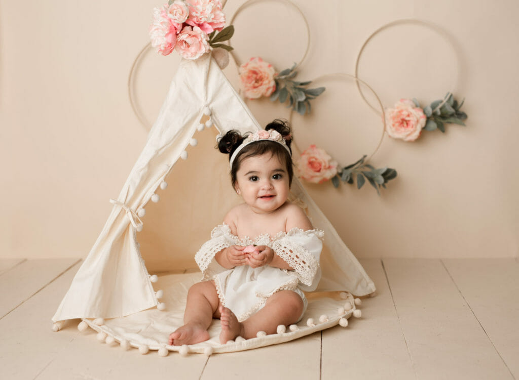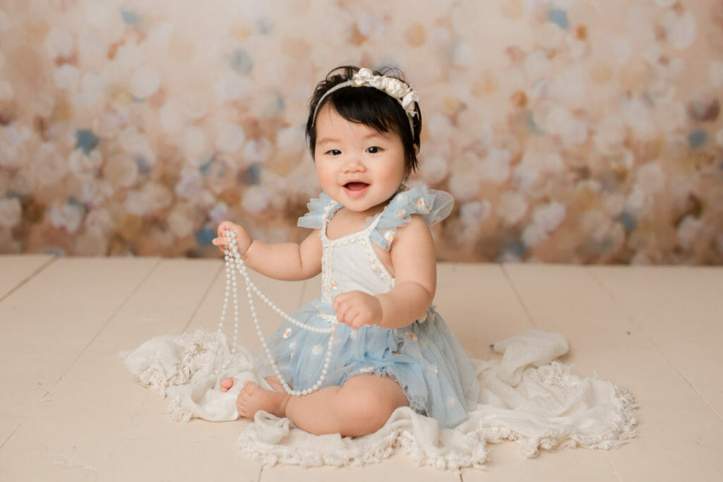 Seven month old babies are so much fun! They are the best models because they love to smile but they can’t really go anywhere just yet so you pretty much just set them down and they stay there smiling and being all cute. Elisse came to me a few weeks with the most beautiful clear…